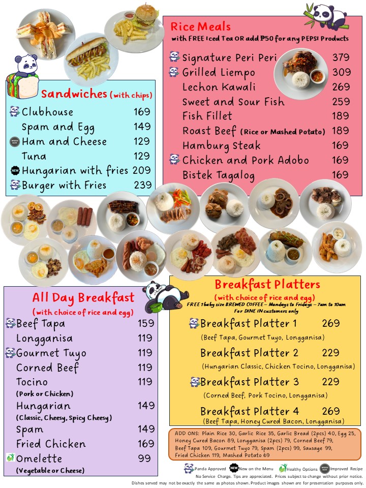 - Breakfast and Platter Dishes: Includes breakfast platters, tapsilog, sausage platters, and similar hearty meals.